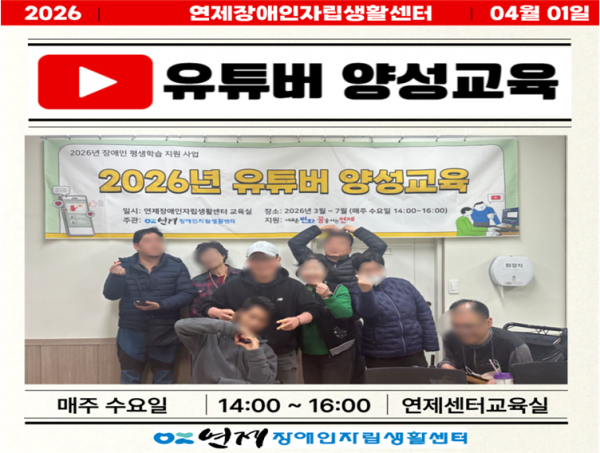 유튜버 양성교육은 매주 수요일 오후 2시부터 4시까지 진행될 예정이며,
