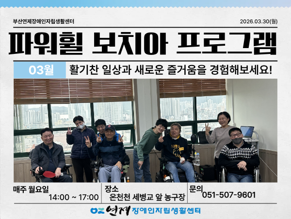 ♥ 보치아 정기모임 04회차 ♥ 페이지 정보 작성일 26-03-30 16:47 본문 목록 이전글유튜버 양성교육 1회차 활동후기 26.04.01 다음글2026년 3월 무료 이미용 서비스 ♥♥ 26.03.27