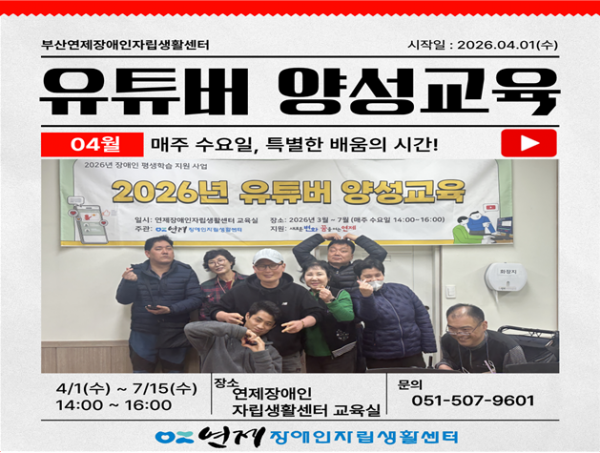 유튜버 양성교육은 매주 수요일 오후 2시부터 4시까지 진행될 예정이며,